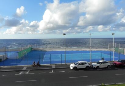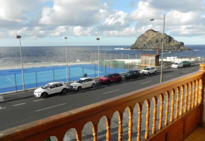 Spacious corner flat on the first line directly by the sea. The chic wooden balcony offers an unobstructed view of the Atlantic Ocean and the cliffs of Garachico. The flat has a VV licence and is also suitable as an investment. The flat on the first floor is divided into a large living area with an american kitchen and a balcony facing the sea, a bedroom, a bathroom and a partially covered terrace at the rear. The well-kept building is located at the entrance to Garachico and therefore has an extensive infrastructure with shopping facilities and restaurants in the immediate vicinity.