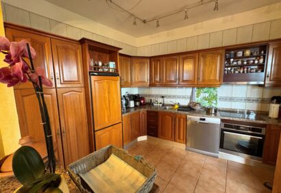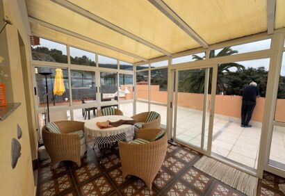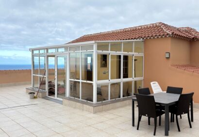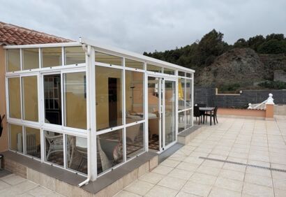 Well-maintained house with a beautifully landscaped garden in Icod de los Vinos. It has been completely renovated and furnished to a high standard. Large terraces, a conservatory, barbecue area and views of the Atlantic Ocean and Mount Teide complete the offer. The lower part of the house comprises a spacious living room with an open-plan kitchen, two bedrooms and two bathrooms. The upper part features a large terrace with panoramic views, a conservatory, two bedrooms and another bathroom. The location is very quiet yet well connected. Shops and restaurants are within easy reach and bus stops are within walking distance.