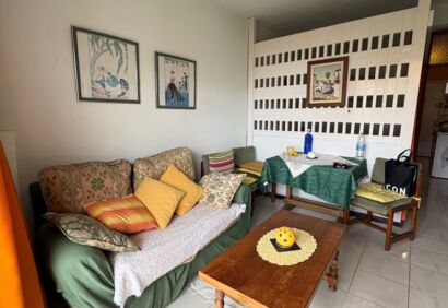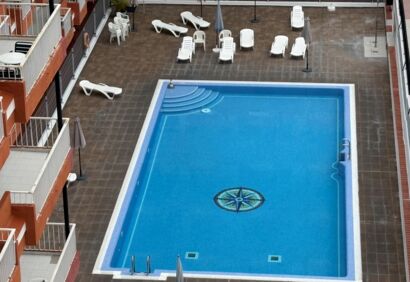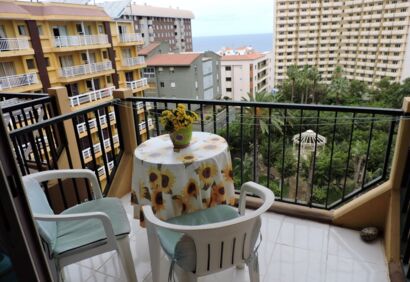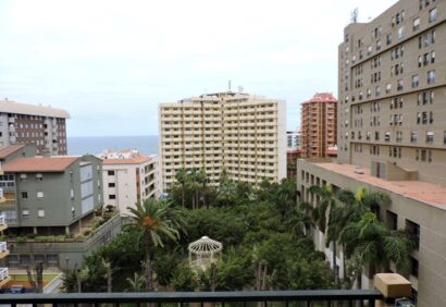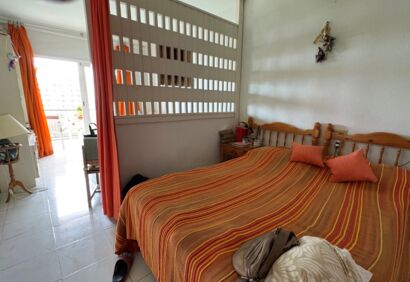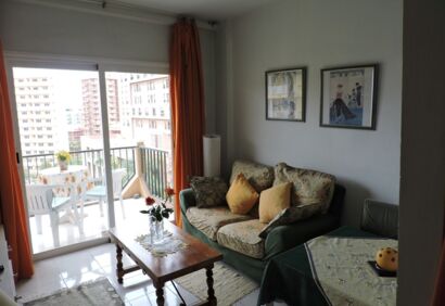 Studio located on the seventh floor of the building „Seguro de Sol“. From the balcony you have views to the sea anda green park. The area offers an excellent infrastructure just a few steps from the beach and bus station. The well-kept complex has a communal swimming pool for cooling and sunbathing. Here you can enjoy a great climate all year round. The location is totally central with a variety of supermarkets and shops and the bus station is just across the street. The popular beachplaya jardin is only a five minute walk away.