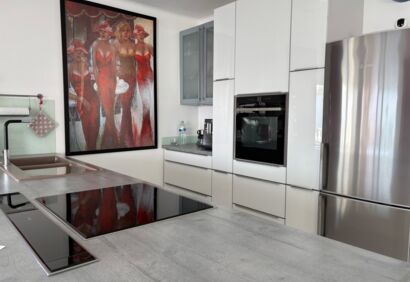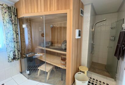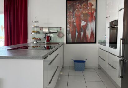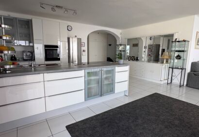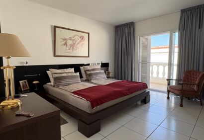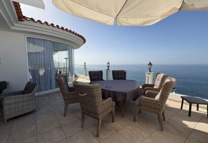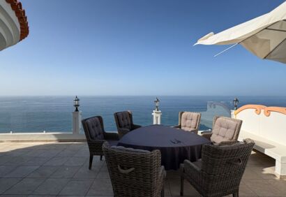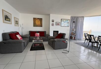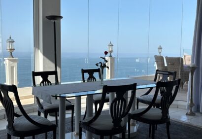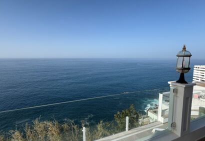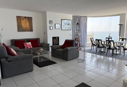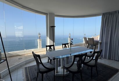 Exclusive living on the seafront. This spacious luxury apartment offers a living experience that is in no way inferior to that of a house. 180° view of the Atlantic Ocean, private pool, sauna, small garden, large terraces. This superbly equipped apartment is located in the front row directly by the sea and impresses with spectacular views like those from a cruise ship, as well as high-quality construction and fittings. The bright, open-plan living area has large windows, a cosy fireplace and a modern kitchen in mint condition. Outside, there is a private solar-heated pool, an easy-care garden and large terraces. The price includes a parking space and storage room in the building's garage.