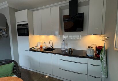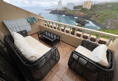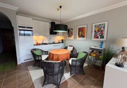 A modern flat on the seafront with unobstructed views of the Atlantic Ocean and the coast. The large, south-west-facing terrace enjoys plenty of sunshine. An parking space in the building is included in the price. The apartment offers superior living comfort with an ideal floor plan and is tastefully furnished to a high standard. The attractive and very well-maintained complex is situated on a promontory above a bay and features a reception, a stylish pool area, a tropical garden and a day bar. There is a small beach directly below the complex. Shopping facilities, restaurants and a comprehensive range of amenities are also within easy reach.